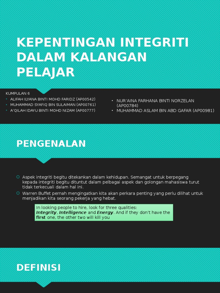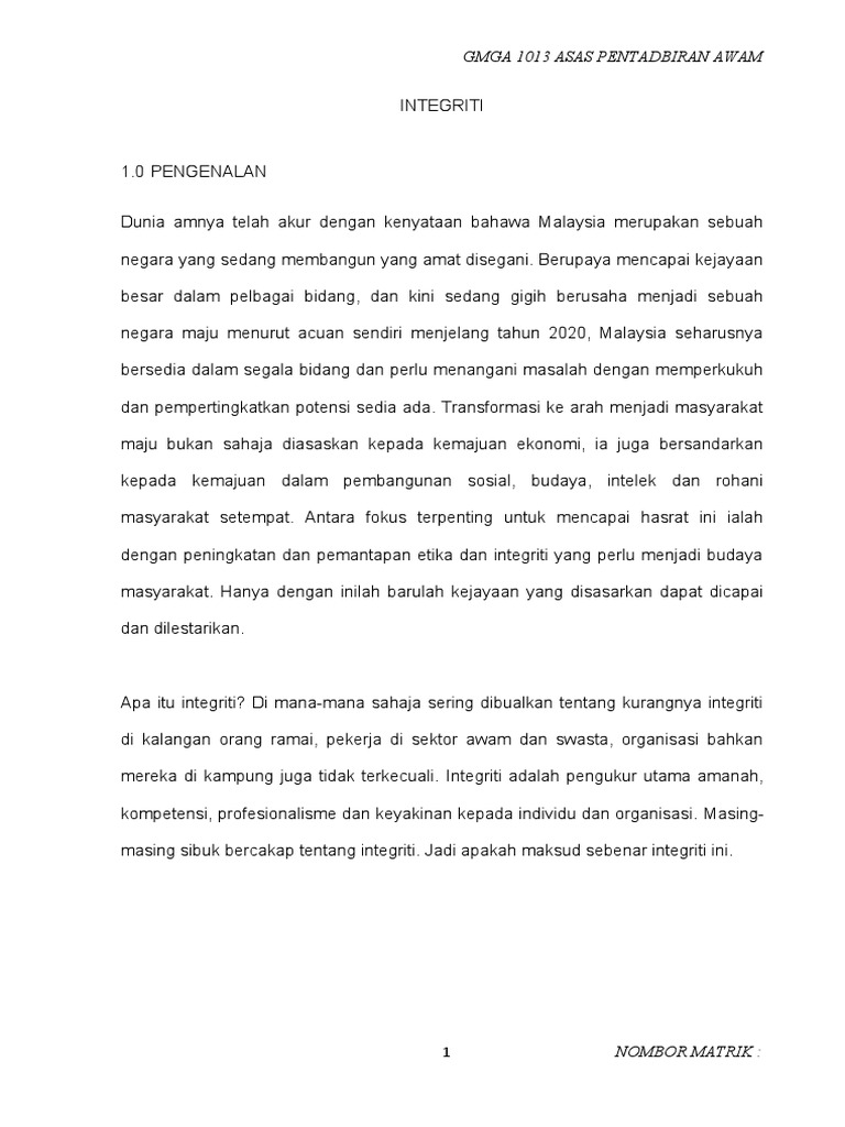 Kepentingan Integriti Dalam Kalangan Pelajar Pdf